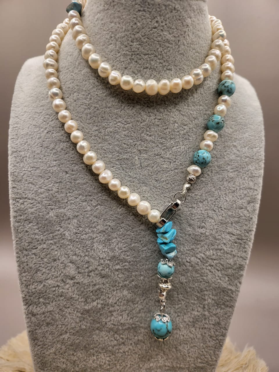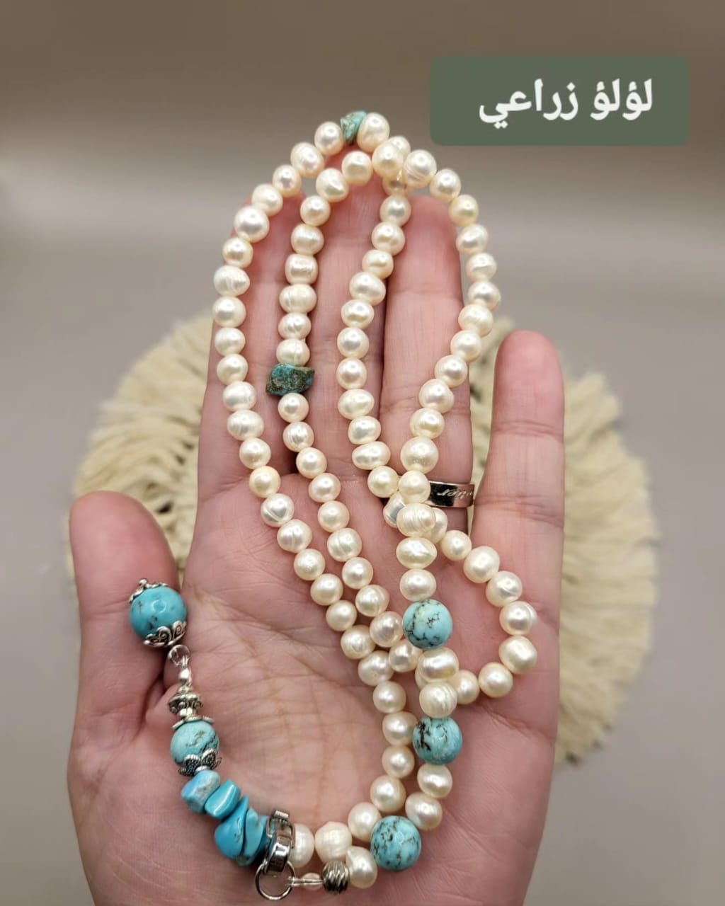 سبحة قلادة وقابلة للارتداء كأسورة ايضا، من اللؤلؤ الطبيعي الزراعي